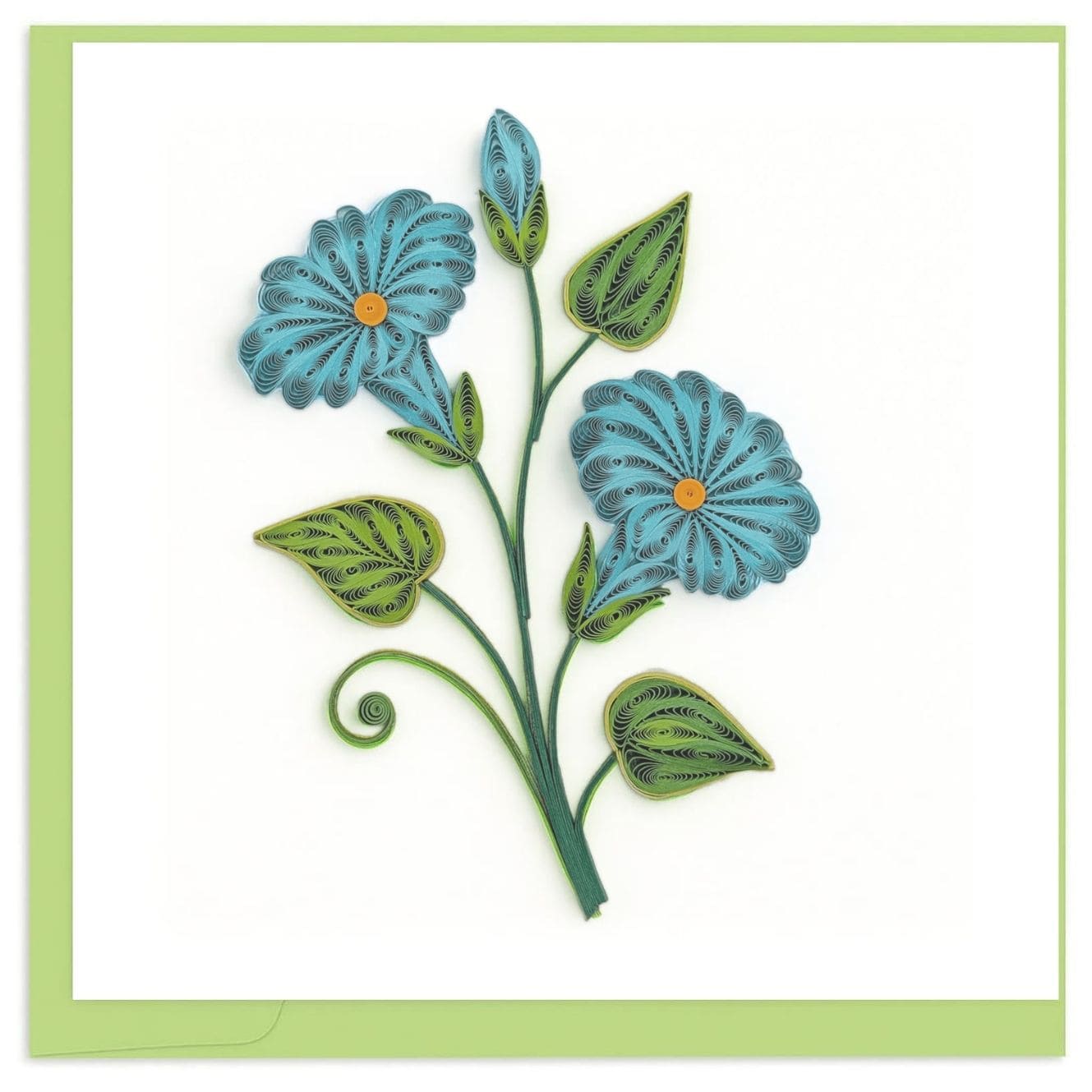 Calm clarity is shaped through fine quilling lines. This elegant card features blue morning glory with slender stems and soft movement, rendered in layered paper coils that create lightness, balance, and natural grace.
